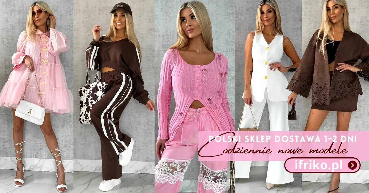 Z radością witamy Cię na stronie ifriko.pl. To sklep polski, który na początku — od 2006 do 2010 roku — zajmował się wyłącznie sprzedażą stacjonarną. Nasze sklepy na terenie Pomorza Środkowego oferowały fajne ciuchy damskie, które szybko zdobyły uwagę klientek. Dzięki wysokiej jakości i niskim cenom, jakie oferujemy, kilka lat później przenieśliśmy działalność do Internetu. Dziś możemy pochwalić się gronem zadowolonych klientek, wracających na zakupy po modne ubrania damskie, które nie rujnują ich portfeli.