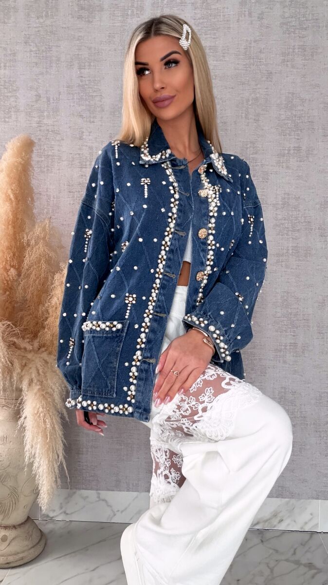 Zacznijmy od mocnego uderzenia. Wyobraź sobie surowy, klasyczny denim. A teraz dodaj do niego bogate, niemal arystokratyczne koronkowe rękawy i plecy wyszywane złotymi detalami, których nie powstydziłby się dom mody na paryskim Fashion Weeku.